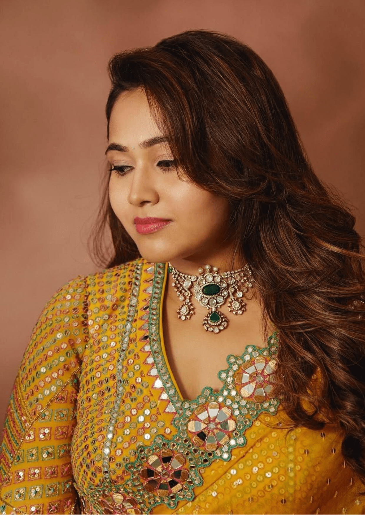 Pair with traditional polki or kundan jewelry, bold bangles, and a statement ring for an elevated festive look.